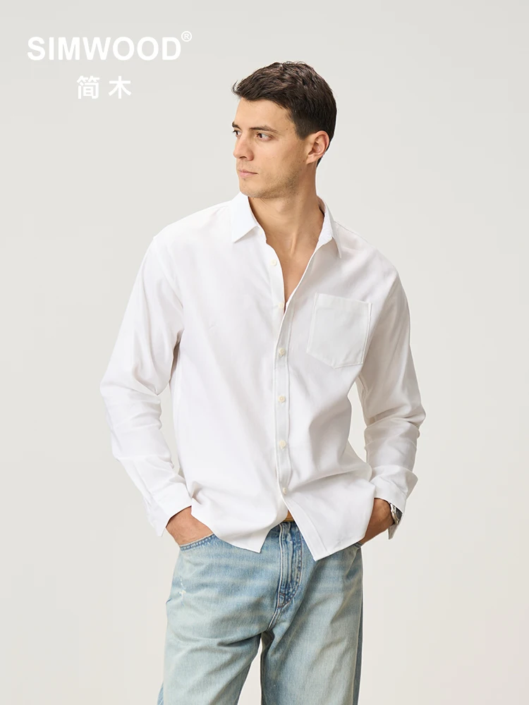 SIMWOOD Spring Summer New 170gsm Cool Breathable Linen Cotton Blend Fabric Shirts Men Comfortable Tops